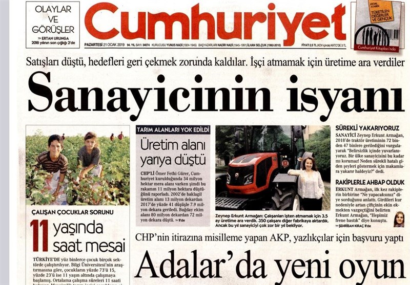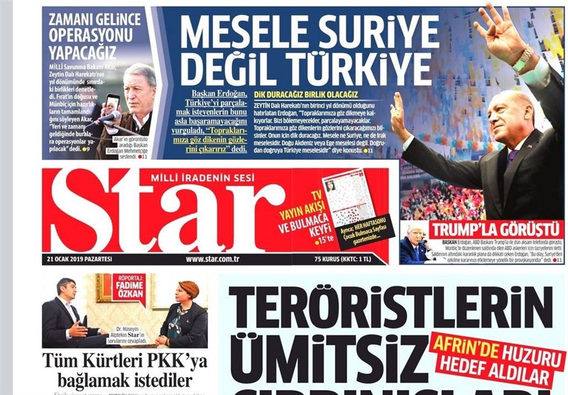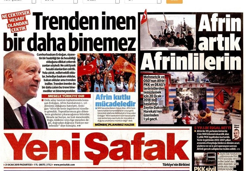 به گزارش گروه بینالملل خبرگزاری تسنیم، بسیاری از روزنامههای ترکیه، امروز در عکس و تیتر صفحه نخست، سخنان اردوغان در مورد حزب عدالت و توسعه را برجسته کردهاند. همچنین این روزنامهها موضوعات دیگری مانند انفجار در عفرین را مورد توجه قرار دادهاند.