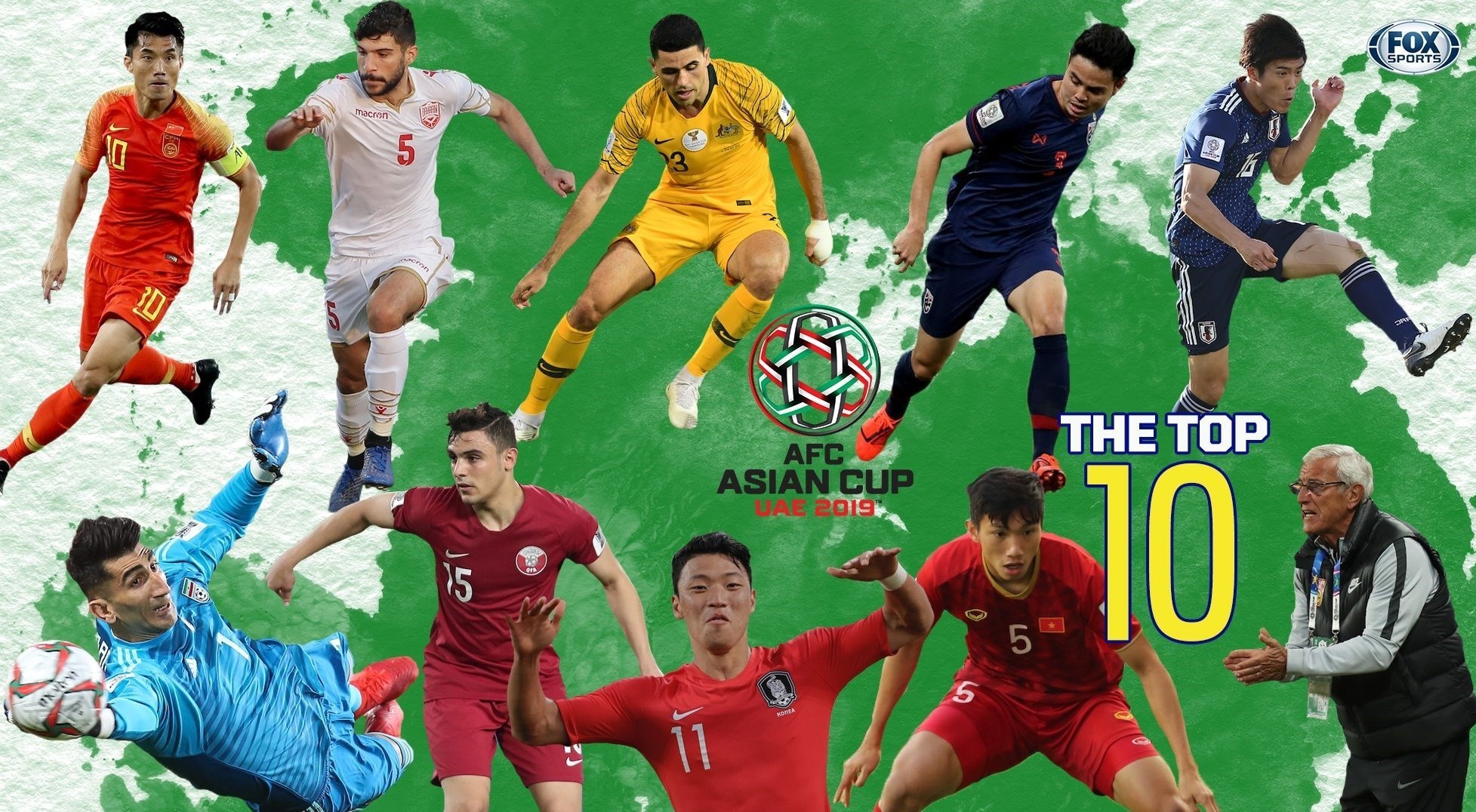 دوان وانهائو (ویتنام)، ژنگ ژی (چین)، تیراتون بونماتان (تایلند)، تاکهیرو تومیاسو (ژاپن)، تام روگیچ (استرالیا)، هوانگ هیچان (کره جنوبی)، حمد الشمسان (بحرین)، بسام الراوی (قطر) و مارچلو لیپی (سرمربی چین)