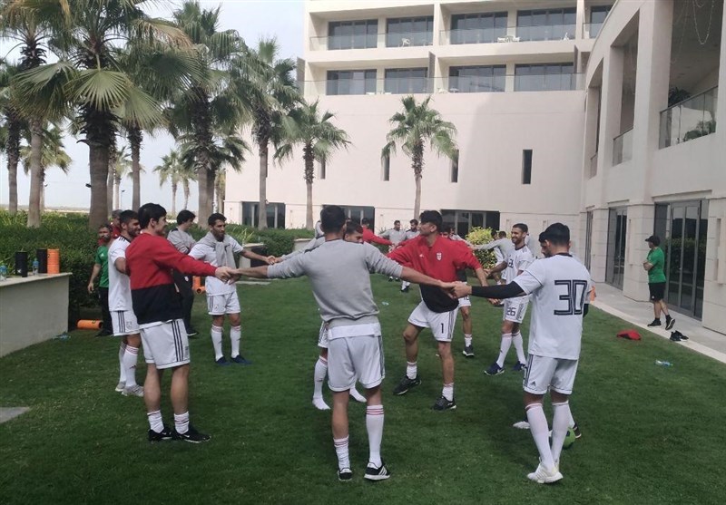 * بازیکنانی که در بازی با چین در ترکیب اصلی حضور داشتند، در سالن بدنسازی هتل محل اقامت ایران به ریکاوری پرداختند و در این تمرین حضور نداشتند.