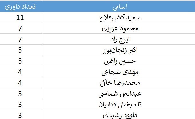 اما نکته قابل تأمل 10 داور برتر این فهرست است که مطابق جدول زیر است:
