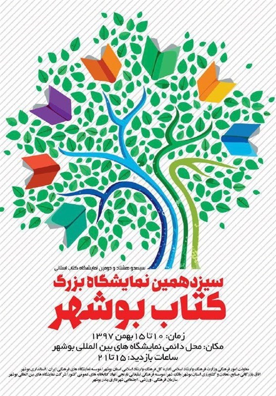 سیزدهمین دوره نمایشگاه کتاب بوشهر10 تا 15 بهمن از ساعت 15 الی 21 در محل دائمی نمایشگاههای بوشهر پذیرای علاقهمندان به کتاب و کتابخوانی است.