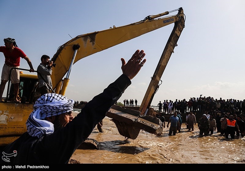 به گزارش خبرگزاری تسنیم از اهواز، از روز گذشته پس از شکسته شدن سیلبند شهر رفیع اهالی این شهر برای نجات شهرشان دست به دست هم دادند تا جلوی سیلاب را بگیرند.