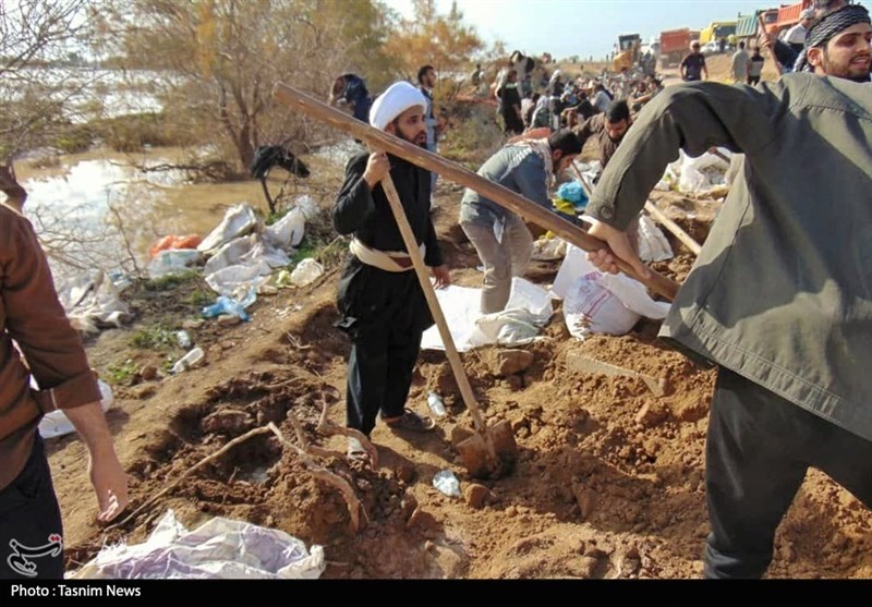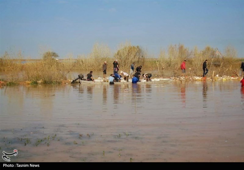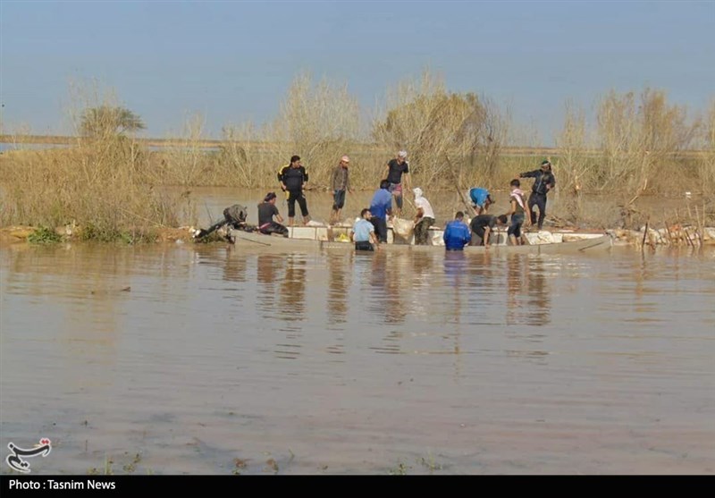 اهواز|سیل‌بند رفیع با همکاری اهالی و نیروهای امدادی ترمیم شد+تصویر