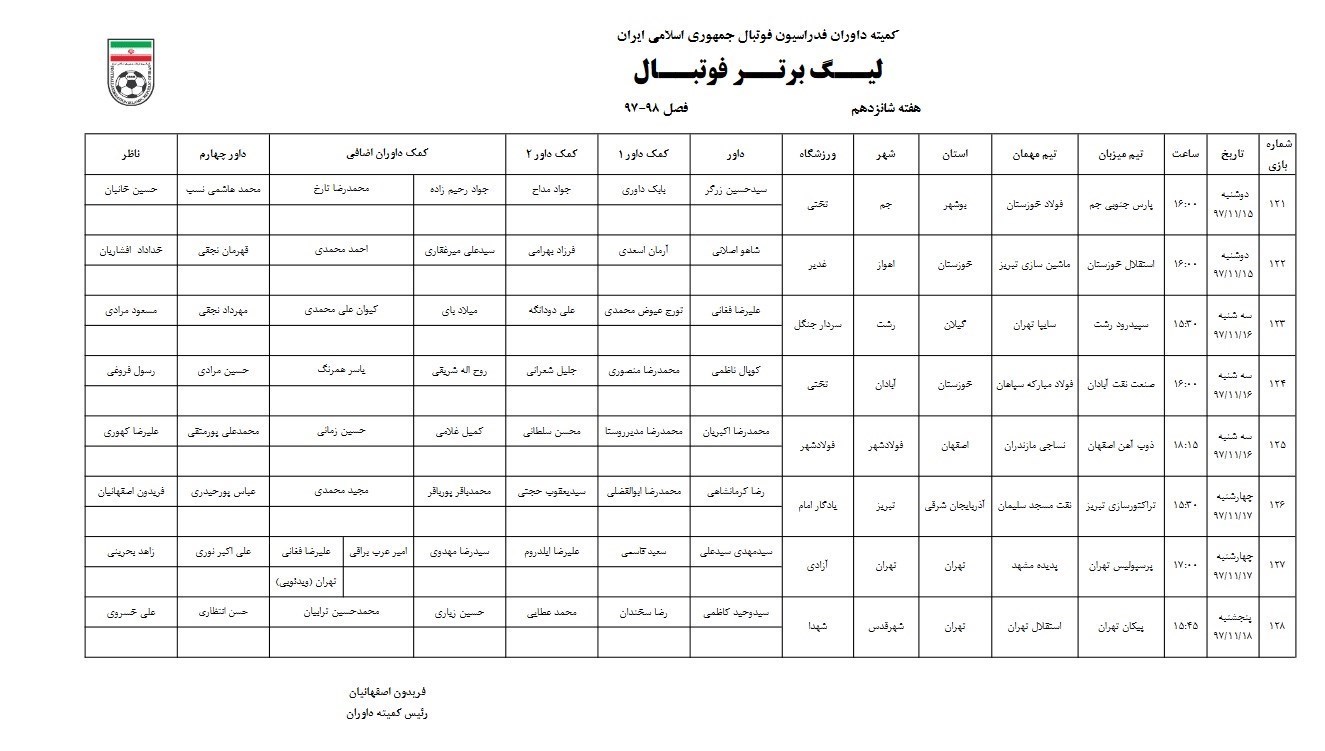 اعلام اسامی داوران هفته شانزدهم لیگ برتر فوتبال
