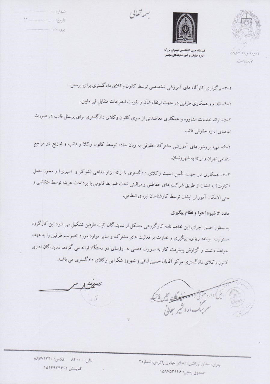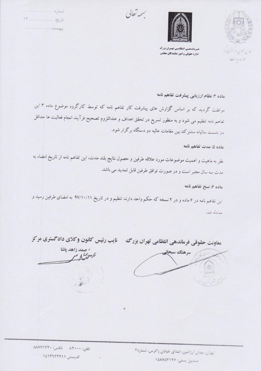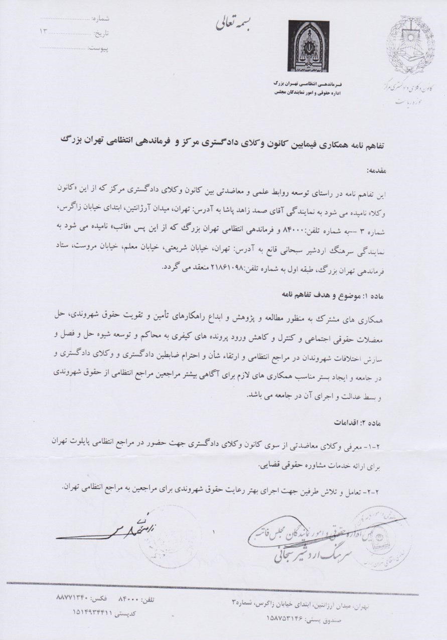 به گزارش خبرنگار حقوقی و قضایی خبرگزاری تسنیم، علاوه بر این در این تفاهمنامه پلیس تهران و کانون وکلای مرکز تفاهم کردهاند که طرفین در جهت اجرای بهتر رعایت حقوق شهروندی برای مراجعان به مراجع انتظامی تهران تعامل و تلاش کنند.