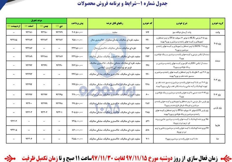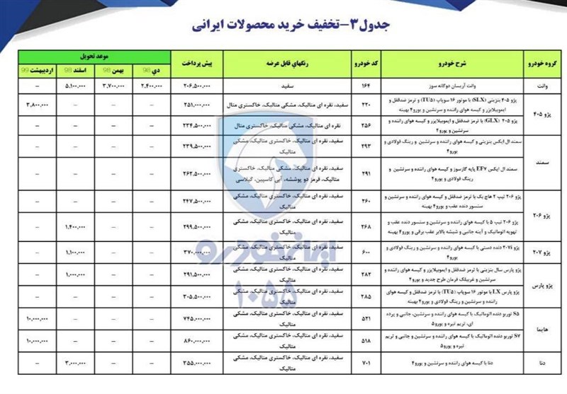 به گزارش خبرنگار اقتصادی خبرگزاری تسنیم، براساس اطلاعیه شرکت ایران خودرو شرایط پیش فروش مشارکت در تولید محصولات این شرکت به مناسبت دهه مبارک فجر بهمن ماه 97 از روز دوشنبه 97/11/15 لغایت 97/11/30 اعلام شد.