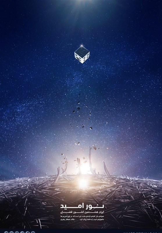 در ذیل این پوستر، این جمله از مقام معظم رهبری نقش بسته است: "نمونه بارز غلبهی ارادهی ملت، این است که در اوج تحریمها ماهوارهی امید را به فضا پرتاب کرد."