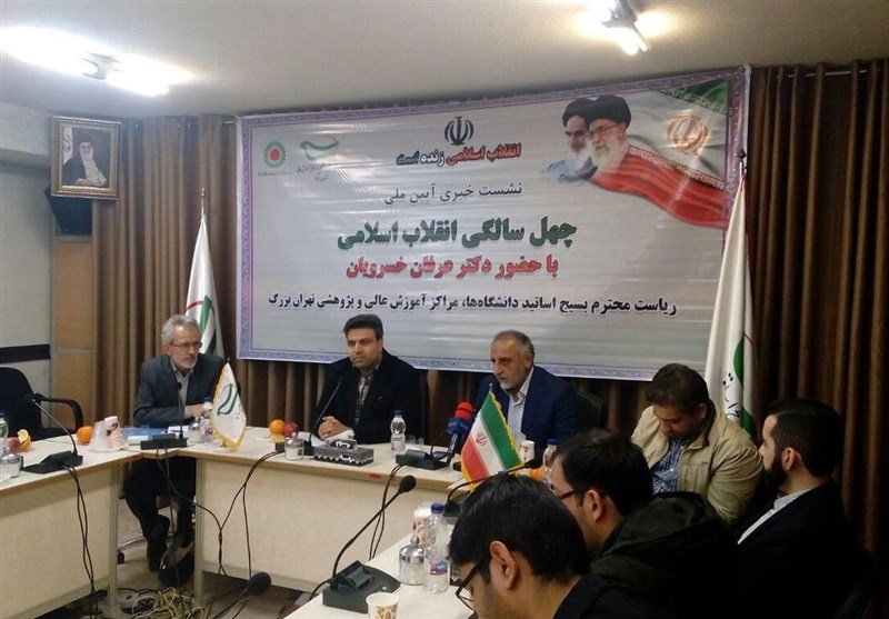 عرفان خسرویان، مسئول بسیج اساتید دانشگاه‌های تهران در این نشست خبری طی سخنانی اظهار کرد: آیین ملی چهل سالگی انقلاب اسلامی روز سه‌شنبه 16 بهمن در تالار فردوسی دانشکده ادبیات دانشگاه تهران برگزار می‌شود و آقایان عزت‌الله ضرغامی، مهرداد بذرپاش و علیرضا زاکانی از سخنرانان این برنامه هستند.