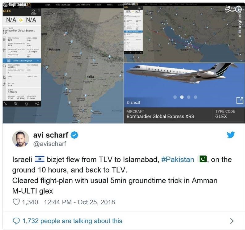 در عین حال شائبه‌های پرواز هواپیمای جت نتانیاهو پس از بلند شدن از مسقط به فرودگاهی در راولپندی پاکستان، نشانی از ربط داشتن این سفر به مسئله نفوذ در افغانستان است. مسیری که جت حامل نتانیاهو آنرا در قالب یک هلال صهیونیستی از فراز آبهای خلیج فارس و دریان عمان طی کرد، فاصله‌ای بود که ممانعت عبور از حریم هوایی را نداشت و توقف در مسقط موجب فراهم شدن این مسیر مطمئن از مصر، اردن، سعودی، امارات، عمان و پاکستان شده است.