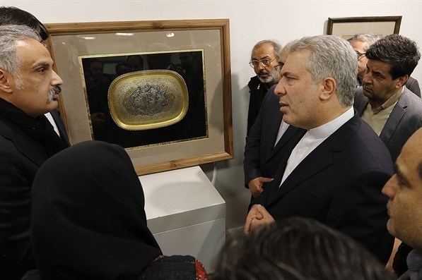 صحبت از تولید انبوه چنین آثاری بود که رئیس سازمان میراث فرهنگی، صنایع دستی و گردشگری، متوجه میشود که همین یک سینی فاخر نیز با قیمت 80 میلیون تومان به فروش رفته است و اینجا بود که «مونسان» به رخدادی در تاکید بر تولید بیشتر چنین صنایع دستی فاخری اشاره میکند: «برخی مواقع از سوی نهاد از ما درخواست هدیه فاخر میشود و باید چنین هدایایی را داشته باشیم، مثلاً آقای «پوتین» در دیدار با رئیس جمهور - یکی از آثار مهم روسیه که شمشیری از دوران تزار بود، هدیه دادند و ما نیز باید چنین آثار و صنایع دستی فاخری را داشته باشیم، زیرا آنها از گنجینههای ملی خودشان این هدایا را به مسولان ما اهدا میکنند ولی ما میتوانیم چنین آثار فاخری را به هنرمندانمان سفارش ساخت دهیم».