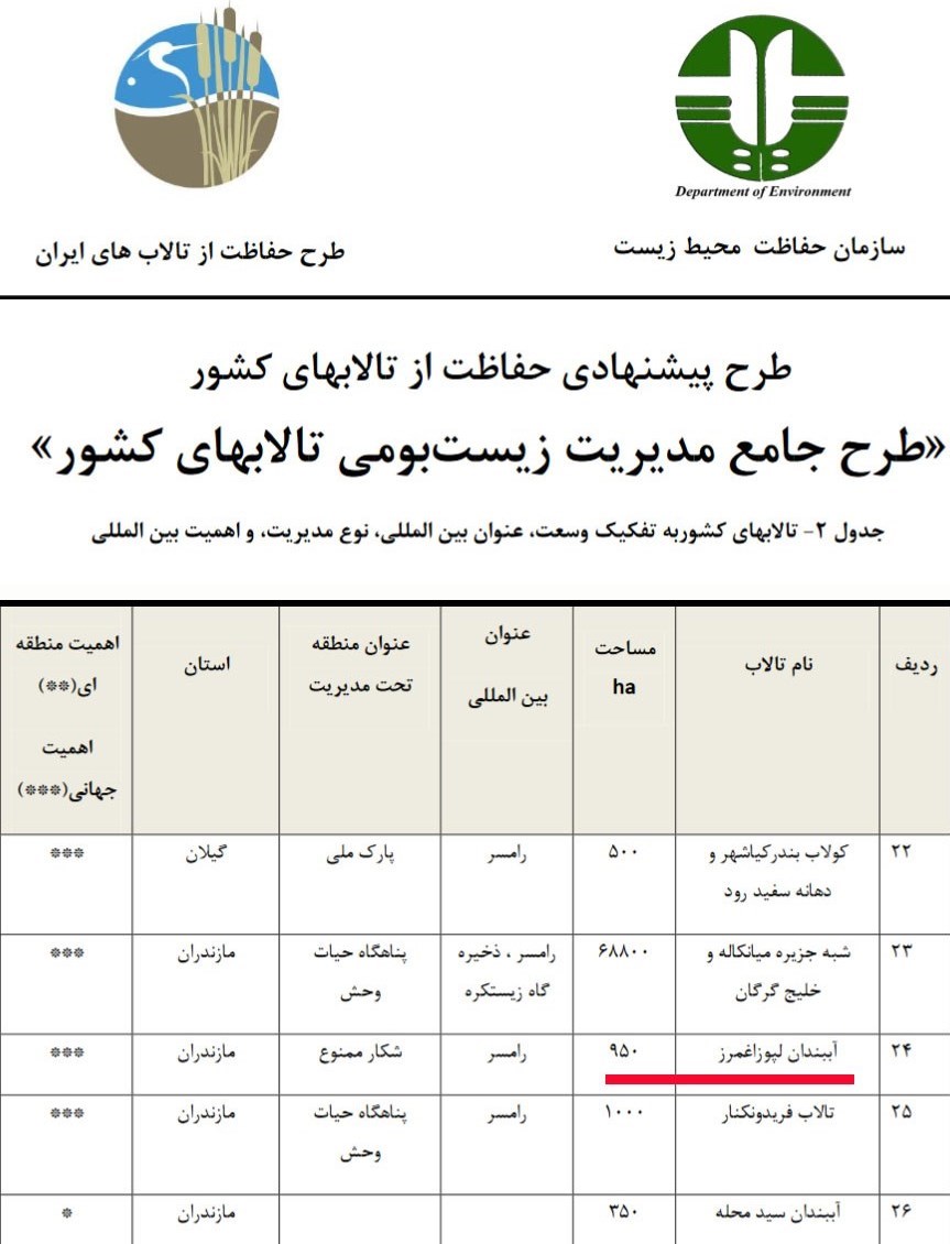 2-  در سال جاری پروانه عادی شکار پرندگان آبزی برای دوره زمانی 15 آذر لغایت 30 بهمن ماه صادر شده  اما قابل ذکر است تالاب لپوی زاغمرز از جمله مناطقی بوده است که شکار پرندگان در آن ممنوع اعلام شده و بصورت مکتوب به کلیه شکارچیان اطلاع‌رسانی شد و علاوه بر آن در سالجاری و برای اولین بار در سال های اخیر قرق شکنی در کلیه آب بندانها برای شکار پرندگان آبزی در استان مازندران ممنوع اعلام گردید و اداره کل حفاظت محیط زیست مازندران هیچگونه مجوز شکاری برای ورود به لپوی زاغمرز صادر نکرده است و چنانچه کاهش جمعیتی در آمار پرندگان مهاجر به تالاب لپوی زاغمرز وجود داشته، بخشی به دلیل متغیرهای محیطی و بخشی دیگر به دلیل عدم مشارکت موثر برخی انجمن ها و برخی افراد محلی در حفاظت از تالاب بوده است. در حالیکه منعی برای ادامه مشارکت انجمن ها و جوامع بومی محلی در حفاظت پرندگان مهاجر در تالاب لپوی زاغمرز وجود نداشته است.