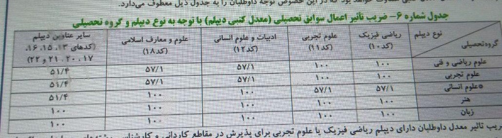 تاثیر اعمال سوابق تحصیلی معدل کتبی دیپلم با توجه به نوع دیپلم و گروه تحصیلی