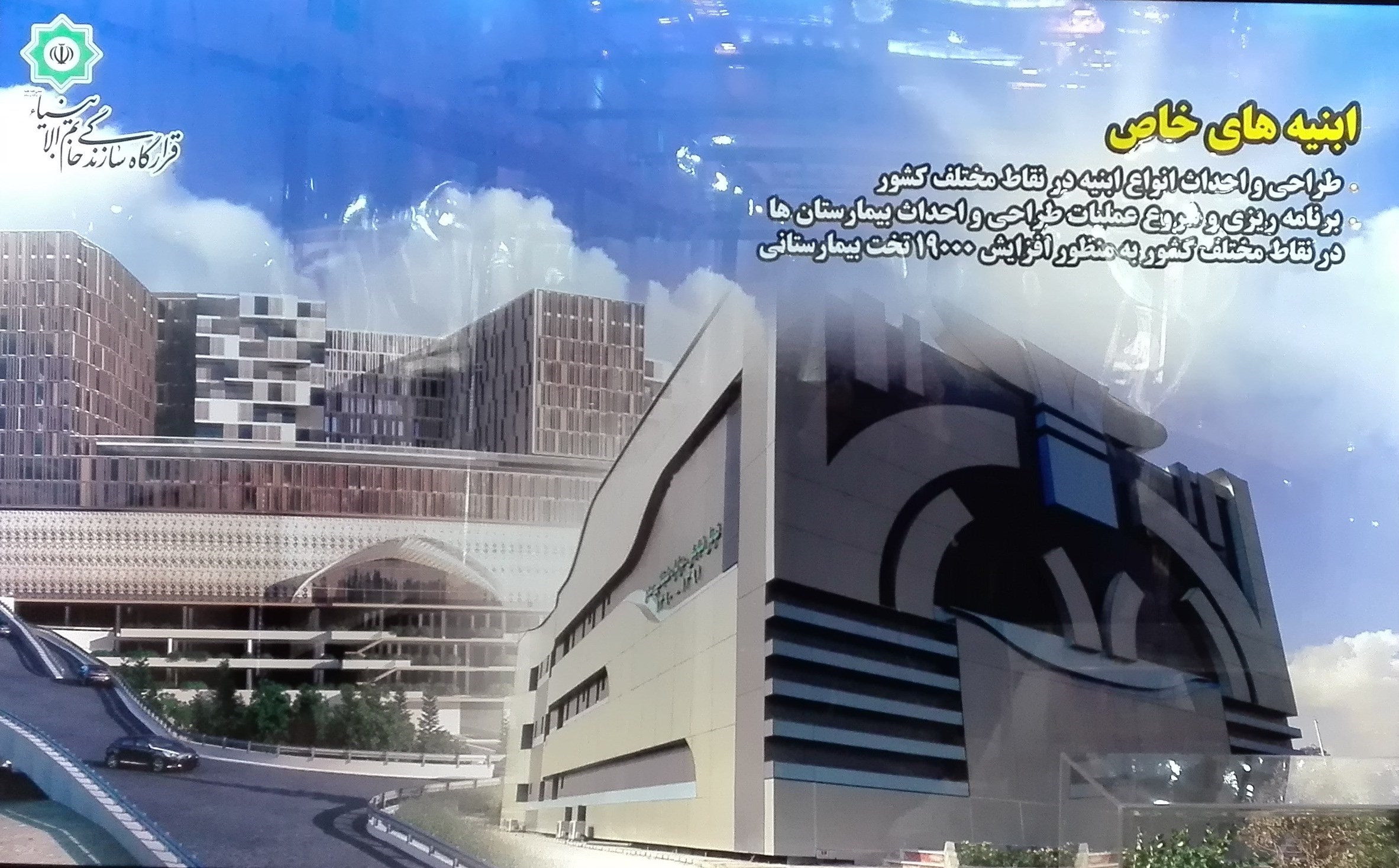 از دیگر پروژههای به نمایش درآمده پروژه ایوان و شبستان مصلی تهران بوده که یک پروژه در حال اجرا توسط قرارگاه سازندگی خاتم الانبیاء (ص) است. این پروژه یک ابرسازه فولادی است و با توجه به اینکه یک دهانه 110 متری بدون ستون و به صورت خوداتکایی در این پروژه با روکش بتنی اجرا می شود، یک پروژه خاص خواهد بود که 4000 تن بتن و 5000 تن آرماتور در آن استفاده می شود. در این پروژه، پس از ساخت، گنبد درون ایوان دیده می شود و می توان گفت روش جدیدی در معماری اسلامی ایرانی در این طرح مدنظر قرار گرفته است.