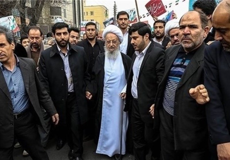 بهمن تماشایی 97| آیت‌الله مکارم‌شیرازی در راهپیمایی 22 بهمن حضور یافت