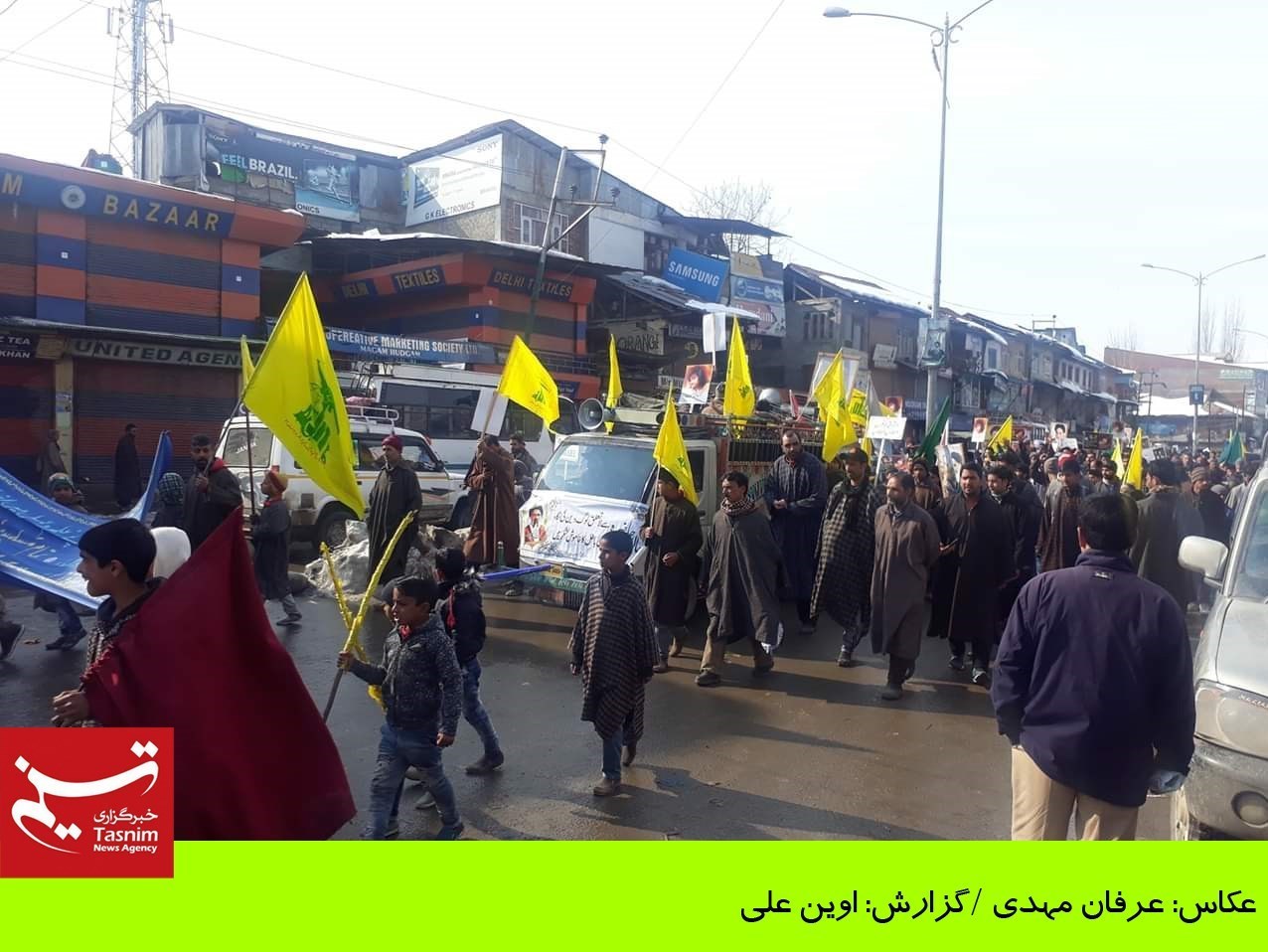 پرچم‌های حزب الله و مقاومت نیز در دستان مردم کشمیر دیده می‌شود که نشان از مواضع آنان در قبال تحولات سوریه، فلسطین و لبنان است.