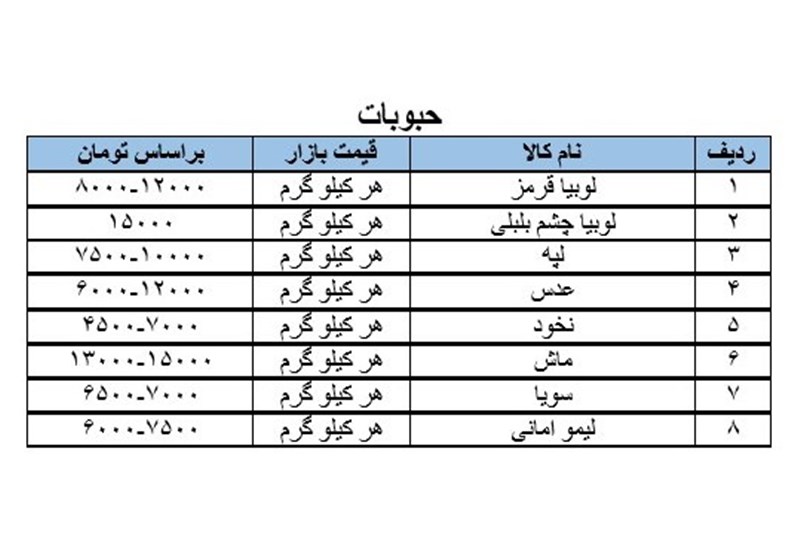 قیمت میوه، حبوبات و مواد پروتئینی در ارومیه؛ سه شنبه 23 بهمن 97 + جدول