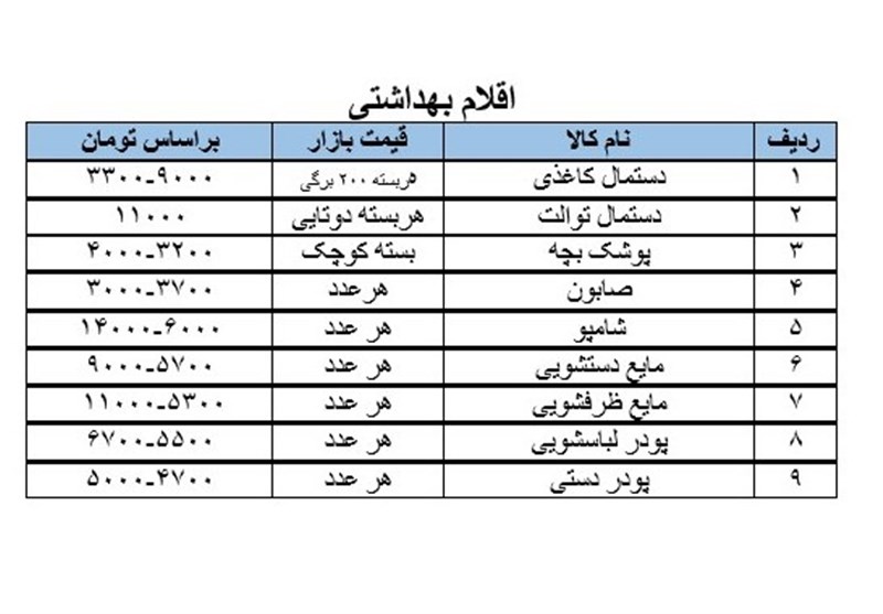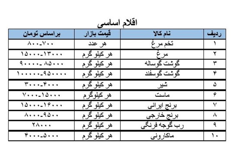 به گزارش خبرگزرای تسنیم از ارومیه، این خبرگزاری در نظر دارد با انتشار قیمت انواع کالاها و اجناس مایحتاج مردم در سطح بازار برای مسئولان شفاف‌سازی کرده تا با اقدام به موقع از سوء استفاده احتمالی برخی گران‌فروشان جلوگیری شود.