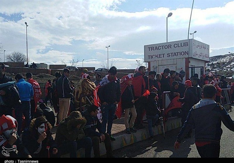 *هوادران تیم تراکتورسازی از ساعتها قبل در مقابل درهای ورزشگاه یادگار امام تجمع کرده و منتظر باز شدن درهای استادیوم بودند.