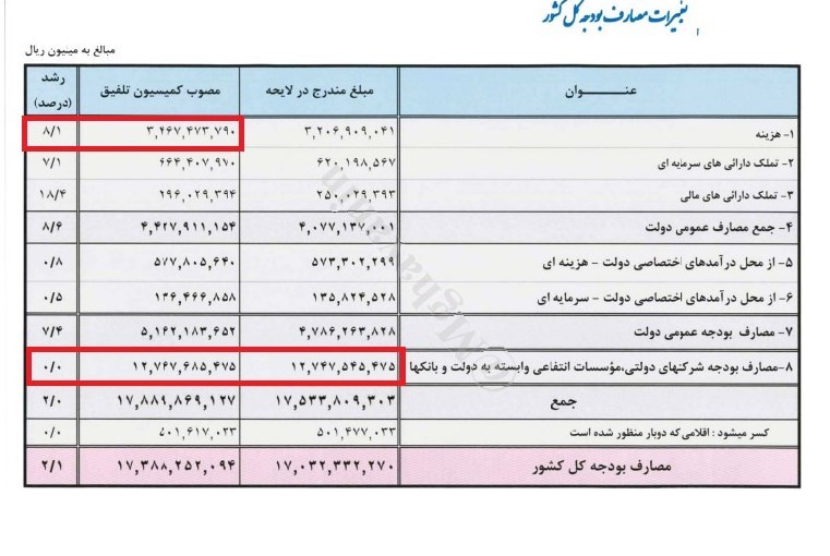 به این ترتیب بودجه(مصارف) شرکتهای دولتی، موسسات انتفاعی و بانکها همان 1270 هزارمیلیارد تومان مندرج در لایحه دولت باقی ماند.