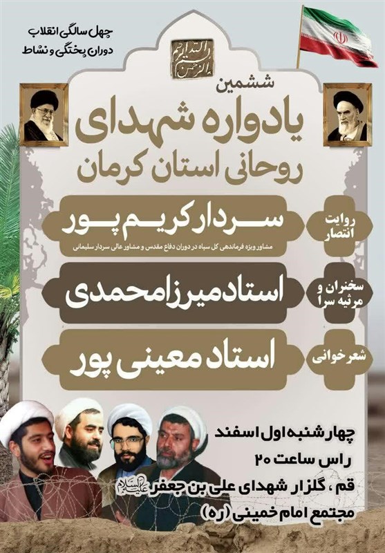 وی با بیان اینکه یادواره 140 شهید روحانی استان کرمان چهارشنبه اول اسفند در محل مجتمع امام خمینی(ره) گلزار شهدای علی بن جعفر قم برگزار میشود و سخنران این مراسم حجتالاسلام میرزامحمدی است افزود: از روحانیون شاخص کرمان و شخصیتهای استان در این مراسم دعوت میشود و هر ساله حضور دارند.