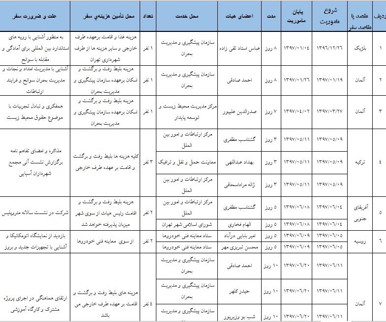 سفرهای خارجی صورت گرفته در سال 97 نیز به شرح ذیل است: