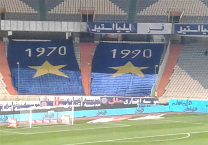 * تماشاگران استقلال دو پرچم بزرگ که روی آنها سالهای قهرمانی استقلال در آسیا نوشته شده بود، در جایگاه مخصوص پرسپولیسیها نصب کردند.