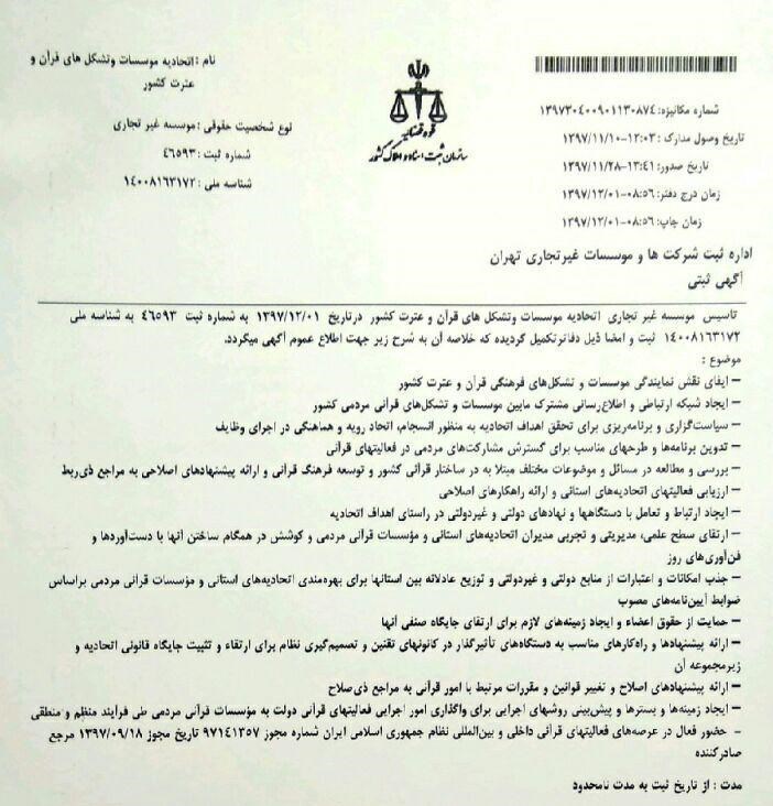 به گزارش باشگاه خبرنگاران پویا، رحیم قربانی، مدیرعامل اتحادیه مؤسسات و تشکلهای فرهنگی ـ مردمی قرآن و عترت کشور گفت: ایفای نقش نمایندگی مؤسسات و تشکلهای فرهنگی قرآن و عترت کشور، ایجاد شبکه ارتباطی و اطلاعرسانی مشترک مابین مؤسسات و تشکلهای قرآنی ـ مردمی کشور، سیاستگذاری و برنامهریزی برای تحقق اهداف اتحادیه به منظور انسجام اتحاد رویه و هماهنگی در اجرای وظایف از جمله وظایفی است که در این سند به آن اشاره شده است.