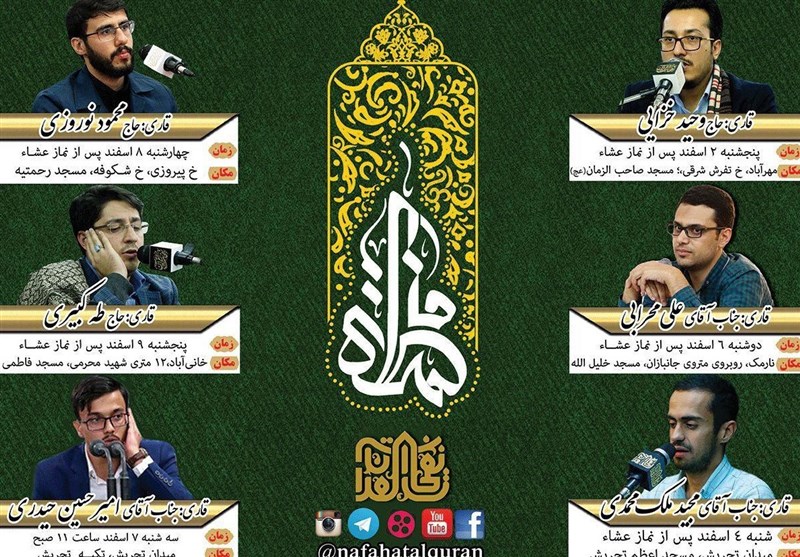 همچنین پخش زنده کرسیها از طریق نرم افزارهای اینستاگرام در صفحه nafahat.video@ و برنامه لحظه نگار است که قرآن دوستان میتوانند با مراجعه به این دو برنامه به صورت زنده از نفحات و نغمات آیات الهی بهره مند شوند.