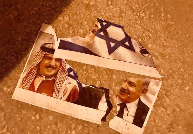 مردم بحرین شب گذشته در اعتراض به سازش آل‌خلیفه با رژیم غاصب صهیونیستی با برگزاری تظاهراتی، تصاویر پادشاه بحرین و نتانیاهو را به آتش کشیدند.