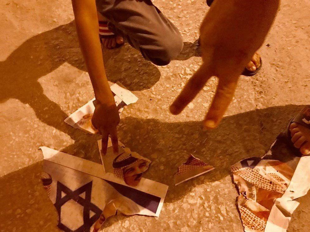 به گزارش گروه بین‌الملل خبرگزاری تسنیم، اهالی منطقه السنابس بحرین شب گذشته در اعتراض به سازش رژیم حاکم آل‌خلیفه با رژیم غاصب صهیونیستی تظاهرات را برگزاری کرده و تصاویر نتانیاهو، پادشاه بحرین و پرچم رژیم صهیونیستی را به آتش کشیدند.