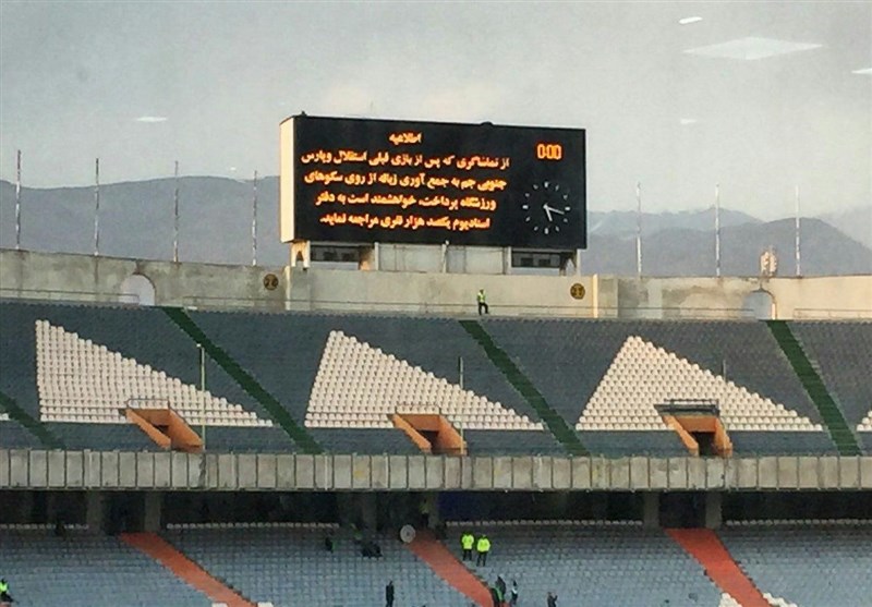 * از اسکوبورد ورزشگاه بارها تصاویر هوادار استقلال در بازی با پارس جنوبی جم پخش شد که پس از پایان این دیدار اقدام به جمعآوری زبالههای ورزشگاه کرده بود. همچنین از هوادارانی که در بازی گذشته استقلال زبالهها را جمعآوری کرده بودند خواسته شد که خودشان را معرفی کنند تا از آنها تقدیر شود.