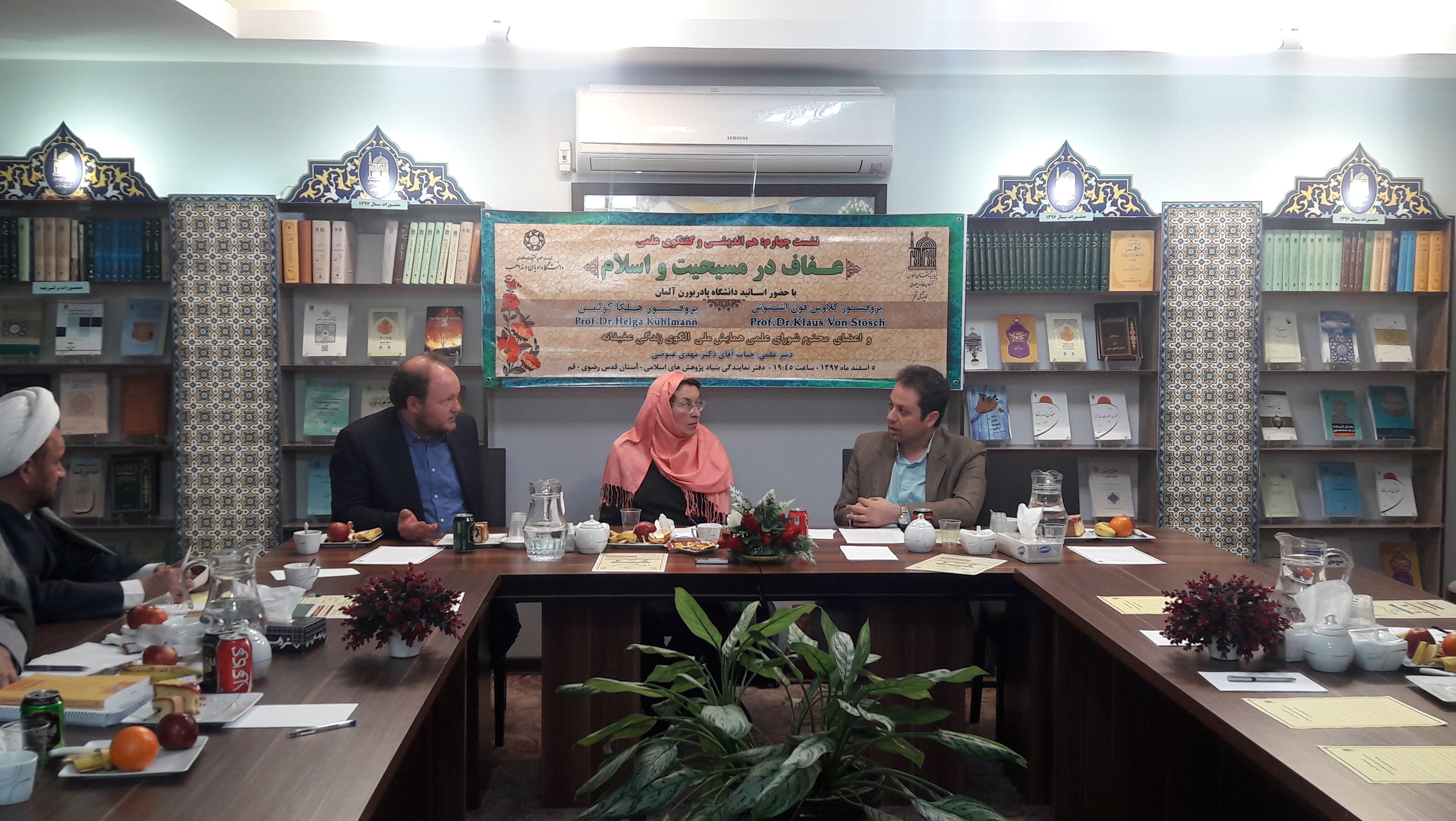 به گزارش خبرگزاری تسنیم از قم، نشست هم اندیشی و گفت وگوی علمی "عفاف در مسیحیت و اسلام"با همکاری بنیاد پژوهشهای آستان قدس رضوی و دانشگاه ادیان و با حضور پروفسور کلاوس فون اشتوس و پروفسور هلگا کولمن از اعضای هیأت علمی رشته الهیات انجیلی دانشگاه پادربورن آلمان، در دفتر نمایندگی بنیاد پژوهشهای اسلامی آستان قدس رضوی برگزار شد.