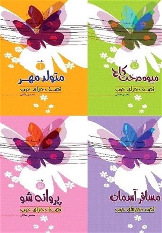 جلد اول این مجموعه با عنوان «متولد مهر»، در قطع رقعی، 56 صفحه و با قیمت 7000 تومان و جلد دوم نیز با عنوان «میوه درخت کاج»، در قطع رقعی، 48 صفحه و با قیمت 6000 تومان منتشر شده است. «پروانه شو»، جلد سوم این مجموعه نیز در قطع رقعی، 48 صفحه و با قیمت 6000 تومان و جلد چهارم هم با عنوان «مسافر آسمان» در قطع رقعی، 56 صفحه و با قیمت 7000 تومان منتشر شده است.