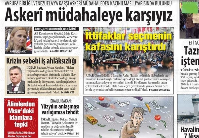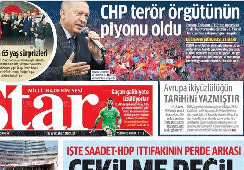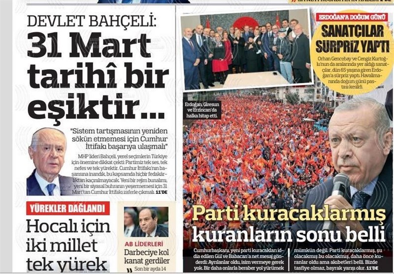 به گزارش گروه بینالملل خبرگزاری تسنیم، بسیاری از روزنامههای ترکیه، امروز در عکس و تیتر صفحه نخست، انتقادات تند اردوغان از احزاب مخالف را برجسته کردهاند. همچنین این روزنامهها موضوعات دیگری مانند گرانی و بیکاری را مورد توجه قرار دادهاند.