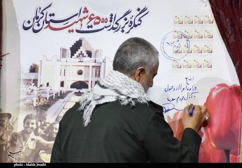 به گزارش خبرگزاری تسنیم از کرمان، سردار سرافراز اسلام حاج قاسم سلیمانی فرمانده نیروی قدس سپاه پاسداران انقلاب اسلامی از تمبر یادبود کنگره 6 هزار و 500 شهید استان کرمان رونمایی شد.