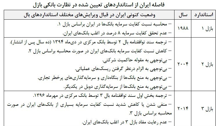 درحالی که بانکهای دنیا براساس استاندارد بال 3، درحال آماده شدن برای کفایت سرمایه 12درصد هستند، میانگین این عدد در ایران کمتر از 5 درصد است. بخش عمده بانک های ایران، هنوز نتوانسته اند حداقل نسبت کفایت تعیین شده در بال 1 در سال 1988 که 8 درصد است را رعایت کنند. بانکهایی میتوانند در تسهیلاتدهی خوب عمل کنند که نسبت کفایت سرمایه بالایی داشته باشند.