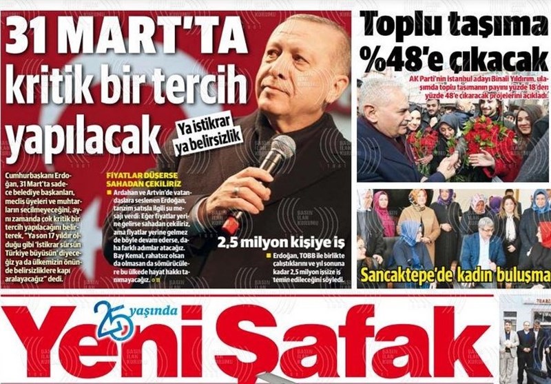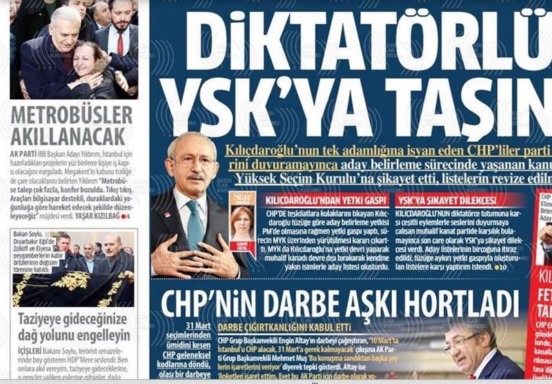 به گزارش گروه بین الملل خبرگزرای تسنیم، بسیاری از روزنامه‌های ترکیه، امروز در عکس و تیتر صفحه نخست، رقابت‌های انتخاباتی احزاب را برجسته کرده‌اند. همچنین این روزنامه‌ها موضوعات دیگری مانند مشکلات اقتصادی ترکیه را مورد توجه قرار داده‌اند.