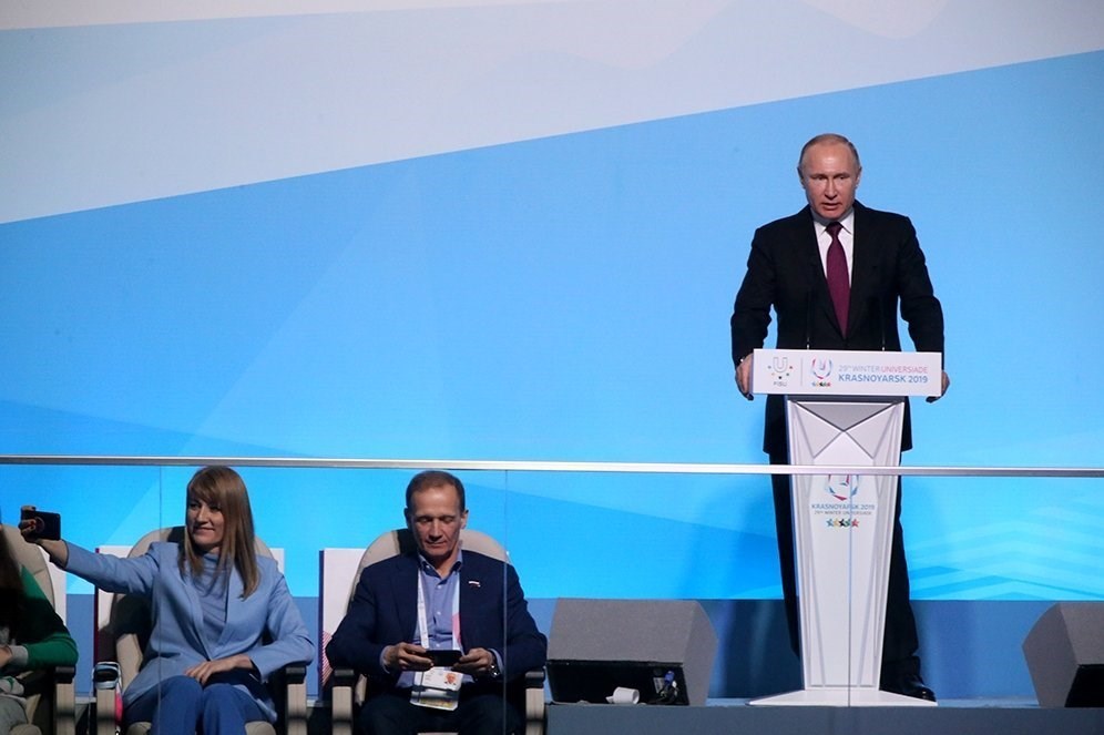 به گزارش خبرگزاری تسنیم و به نقل از خبرگزاری تاس روسیه، امروز (یکشنبه) ولادیمیر پوتین در محل برگزاری تعدادی از رقابتهای یونیورسیاد 2019 حضور یافت و مدالهای قهرمانان اسکی را اهدا کرد. رئیسجمهور روسیه از مرکز عملیاتی این رقابتها نیز بازدید کرد و با اعضای تیم ملی روسیه نیز به صحبت پرداخت.