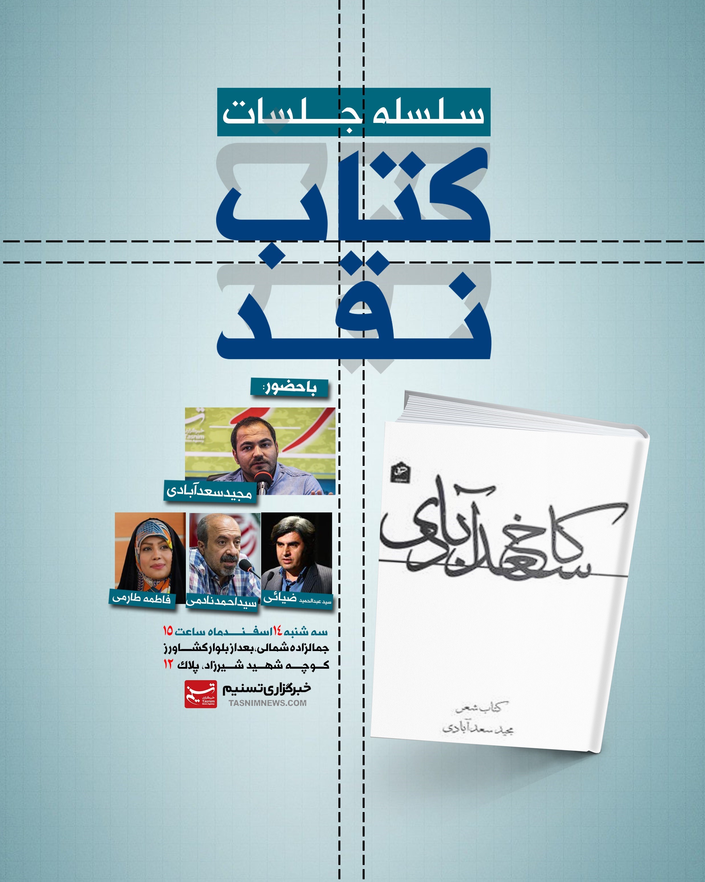 نقد و بررسی کتاب «کاخ سعدآبادی» مجموعه اشعار مجید سعدآبادی با حضور منتقدین و علاقهمندان در محل باشگاه خبرنگاران پویا برگزار میشود.
