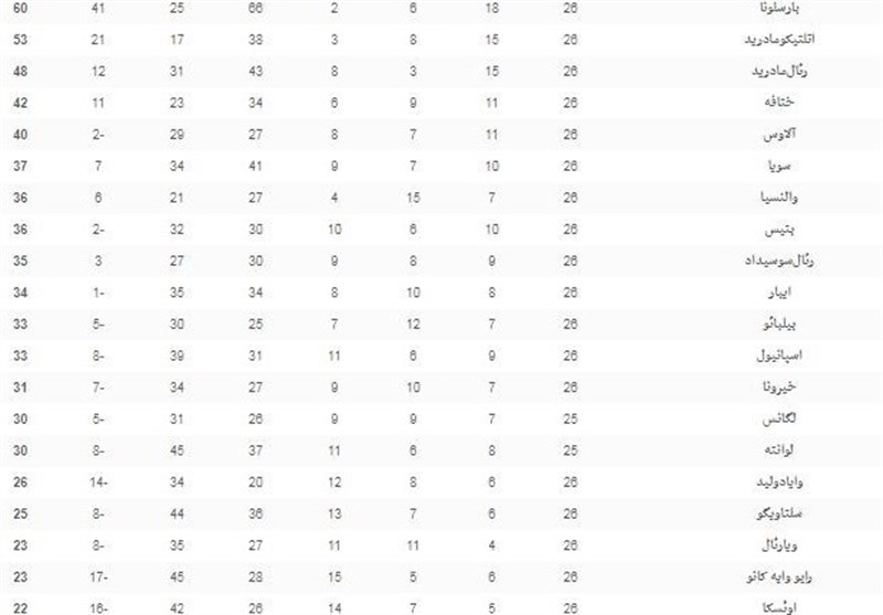 جدول ردهبندی لالیگا را در زیر مشاهده کنید.