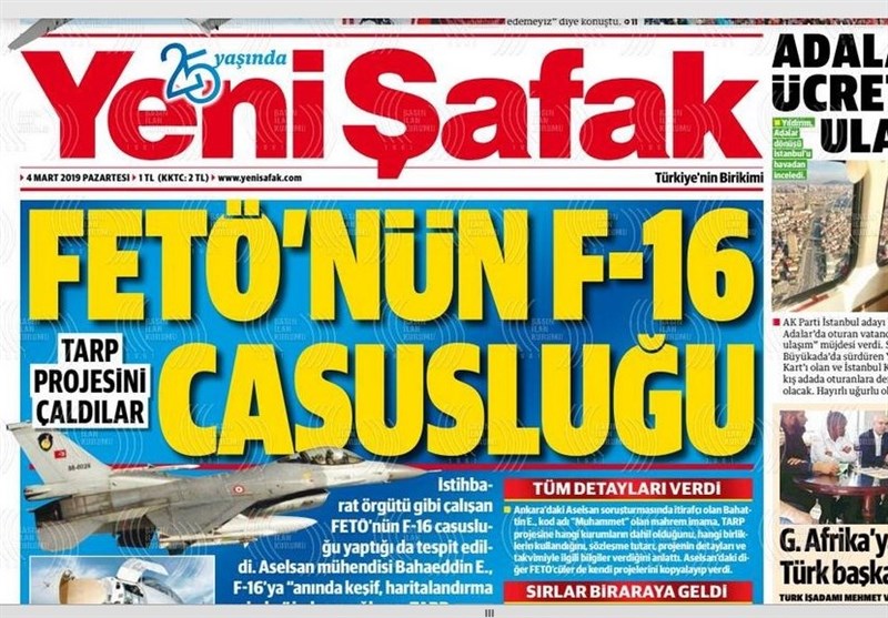 نفوذیهای گولن٬ در پروژه محرمانه اطلاعات هوایی اف 16 جاسوسی کردند