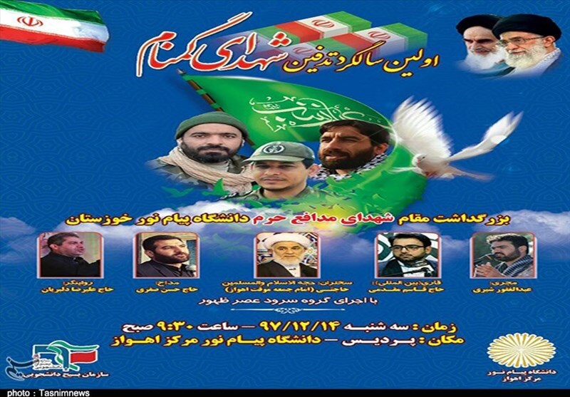 اولین سالگرد تدفین شهدای گمنام و بزرگداشت مقام شهدای مدافع حرم دانشگاه پیام نور مرکز اهواز روز سه شنبه 14 بهمن ماه 97 از ساعت 9:30 صبح در دانشگاه پیام نور واقع در منطقه پردیس اهواز برگزار می شود.