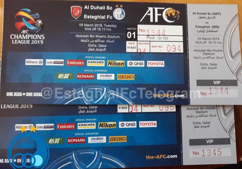 به گزارش خبرگزاری تسنیم، تیمهای فوتبال الدحیل قطر و استقلال در اولین بازی مرحله گروه لیگ قهرمانان آسیا، ساعت 18:45 امروز (سهشنبه) به مصاف هم میروند که از بلیت این بازی رونمایی شد.