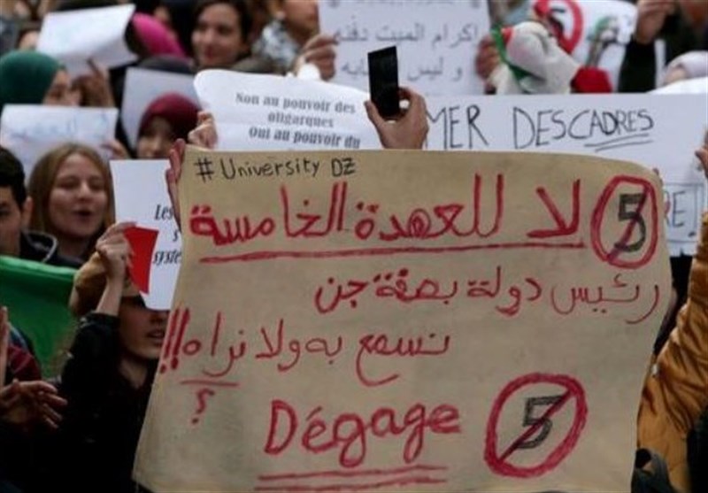 الجزایر طی روزهای گذشته صحنه اعتراضات گسترده به تصمیم بوتفلیقه برای نامزدی در انتخابات ریاست جمهوری برای پنجمین دوره ریاست جمهوری است. روز گذشته دستکم 10 نفر در درگیریها کشته و 45 نفر دیگر بازداشت شدند. بوتفلیقه 81ساله روز گذشته بعد از دو هفته بستری در بیمارستان سوئیس به کشور بازگشت. وی بیست و چهارم فوریه دو روز بعد از تظاهرات گسترده مردمی در اعتراض به نامزدی او برای پنجمین دوره انتخابات ریاستجمهوری به ژنو سفر کرد.