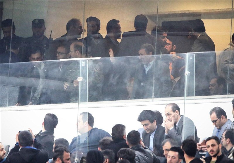 * محمود احمدینژاد رئیسجمهور پیشین ایران و عضو مجمع مصلحت نظام برای تماشای بازی در ورزشگاه آزادی حاضر شد.