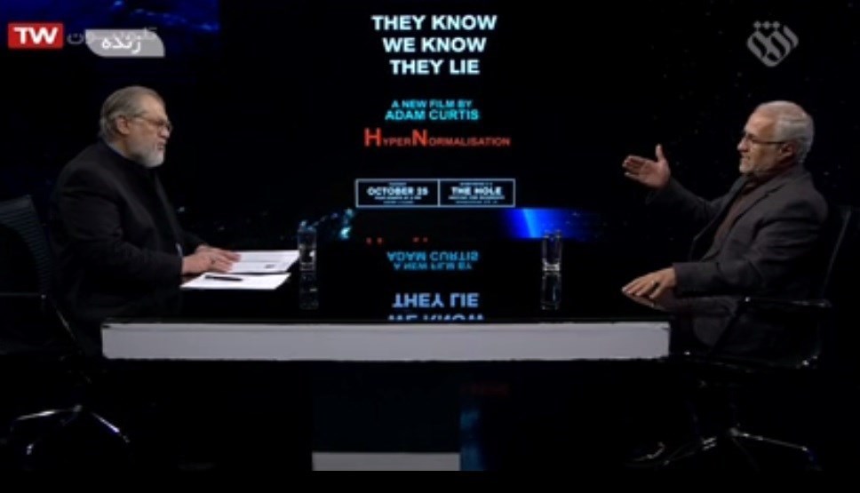 نادر طالب زاده در ابتدای برنامه گفت: BBC مستند جدیدی با عنوان هایپرنرمالیزیشن از آدام کورتیس پخش کرد. این کار درباره ابهام زمان است و اینکه ما امروز در چه مرحلهای واقع شدیم.