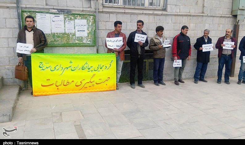 پیمانکارن که سالهاست مسئولان شهرداری و اعضای شورای شهر پاسخگوی مطالبات آنان نیستند، خواستار استعفای شهردار و اعضای شورای شهر سنندج بودند.