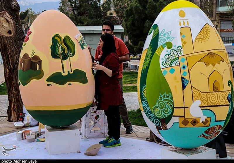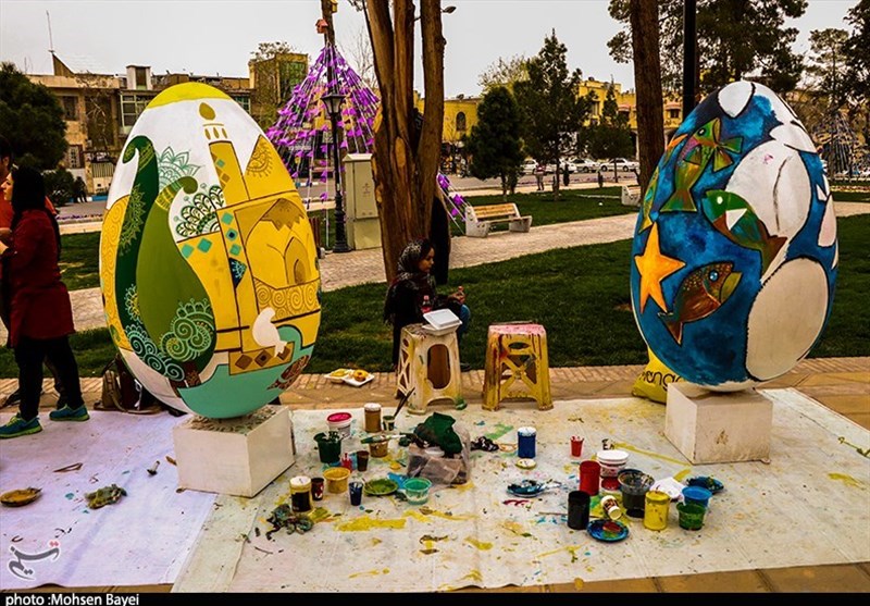 زیباسازی شهر با تخم مرغ‌های نوروزی+تصاویر