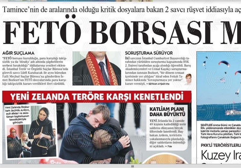 نشریات ترکیه در یک نگاه|اردوغان: حمله نیوزیلند٬ برای ترکیه اولین پیام نیست/ کتاب‌های گولن هنوز از دانشگاه‌های دولتی جمع نشده‌اند