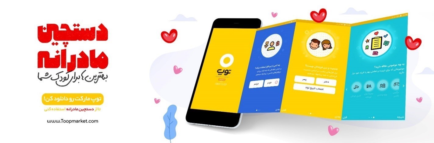 سامانه نرم افزاری توپ مارکت که شامل سایت و نرم افزار اندروید می باشد، با بررسیهای میدانی نیازهای والدین و کودک و همچنین با بهرهگیری از نظرات متخصصان حوزه اوان کودکی قدم در راه ارائه خدمات و محتوا به مادر و کودک نهاده است.